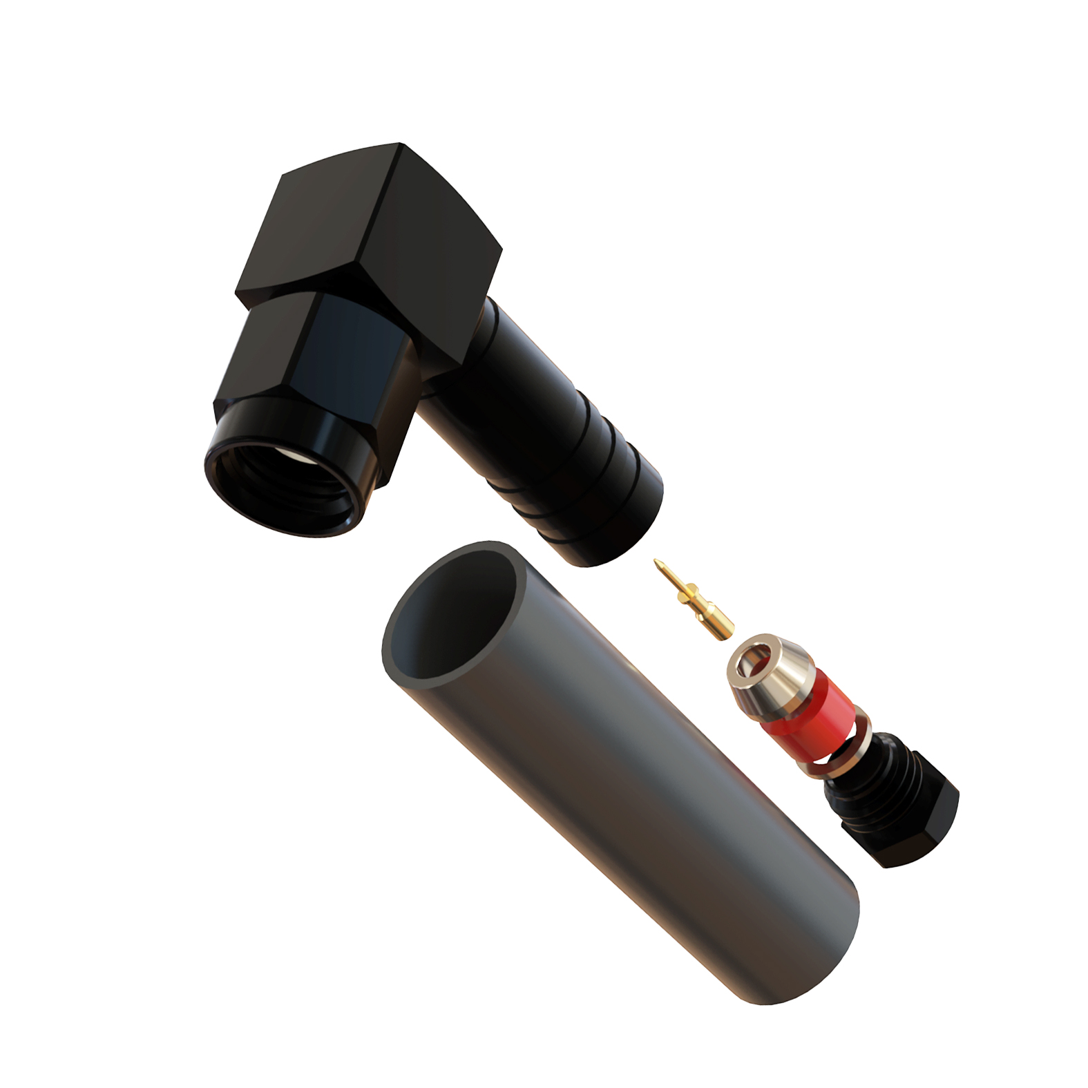 31-104-J10-ADSMA Reverse Polarity IP68 Right Angle Crimp/Crimp PlugSMA Reverse Polarity, Right Angle Crimp/Crimp Plug, IP68 Sealed Un-Mated Plated with a Black Non …